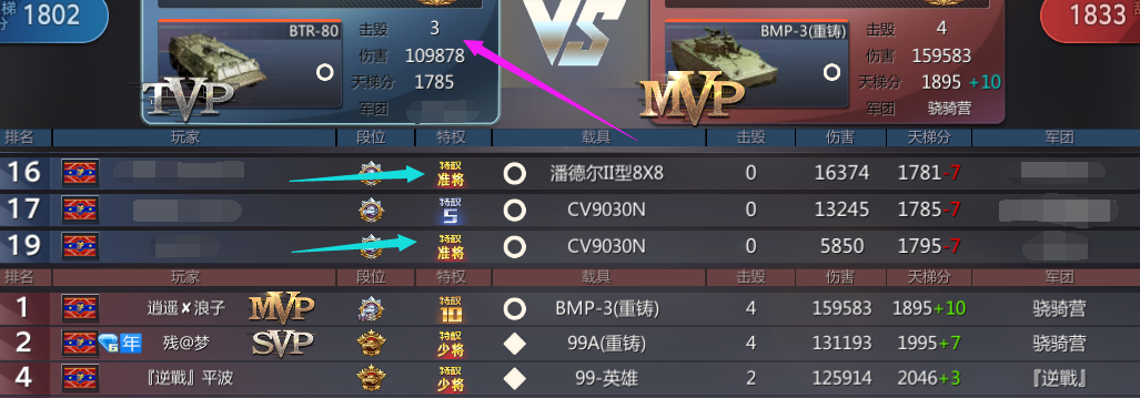 在天梯模式能一直冲上王者可能比没有冲上王者的普通玩家更注重的一点,是在输了的对局中也要努力获得前三,这样可以不扣天梯分数。上图在平衡局中我方准将发挥失常,对方少将发挥出色,小编努力获得了第三名。