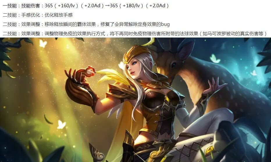 虞姬削弱:1技能伤害小幅增加,2技能移除免控效果,且只免疫物伤。(之前开启的一瞬间,可以免疫控制和伤害)