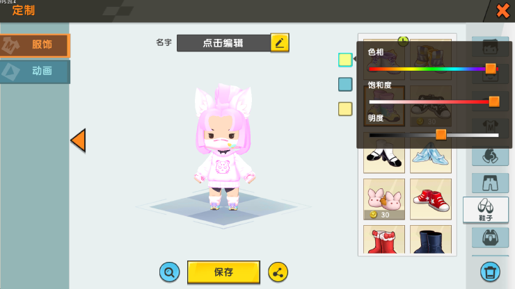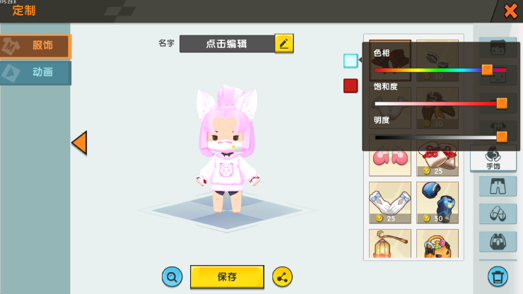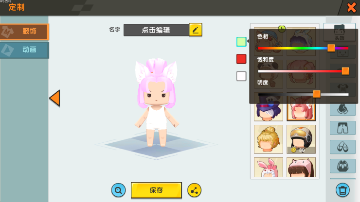 头发这边 我们采用去年参加活动获得的“野性光辉” 虽然现在要50迷你币了 实在可惜 配色 我们调成头发粉 耳朵绒毛白这样可以搭配出一种“狐耳萝莉的感觉”