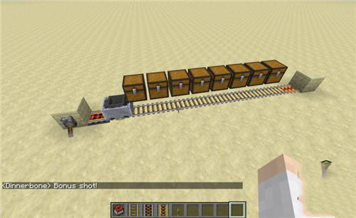 漏斗矿车会在被两个已经被充能的充能铁轨启动后(甚至当前面有一辆矿车时)连续地滑行85个方块远(而一个普通矿车只能滑行不到12个方块)。