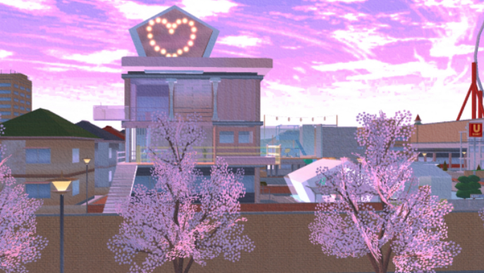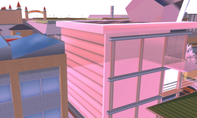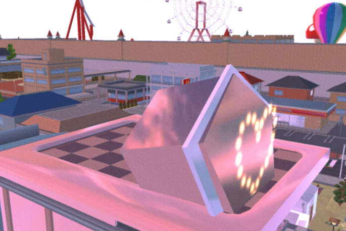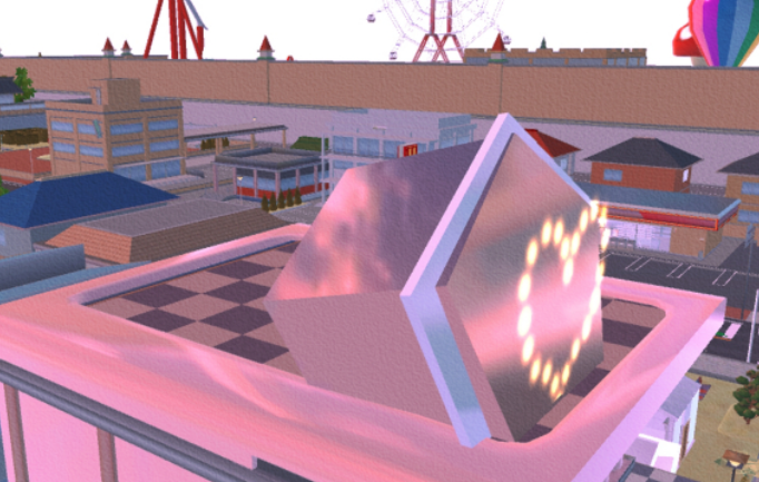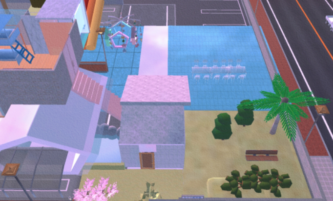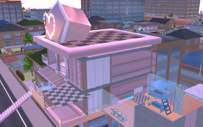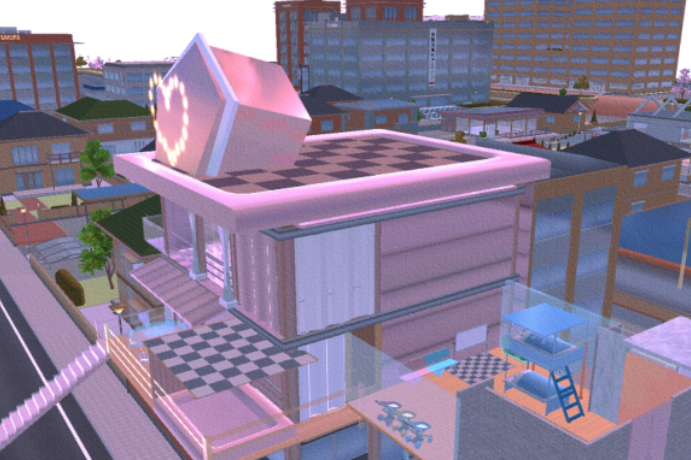 屋顶,闪闪的钻石灯夜晚也可以发亮,墙壁换成了粉色反光材质,坚硬防水