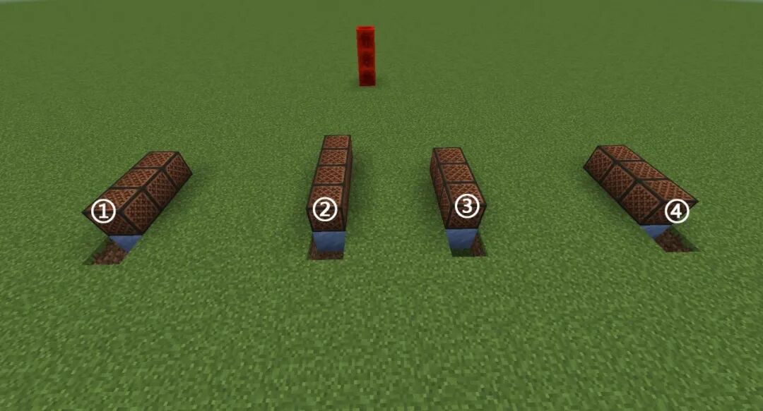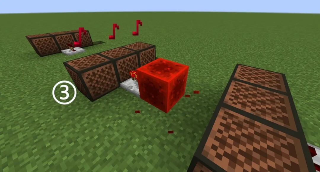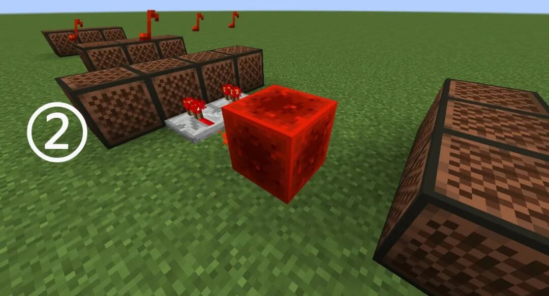 音符盒、浮冰、红石中继器、红石粉