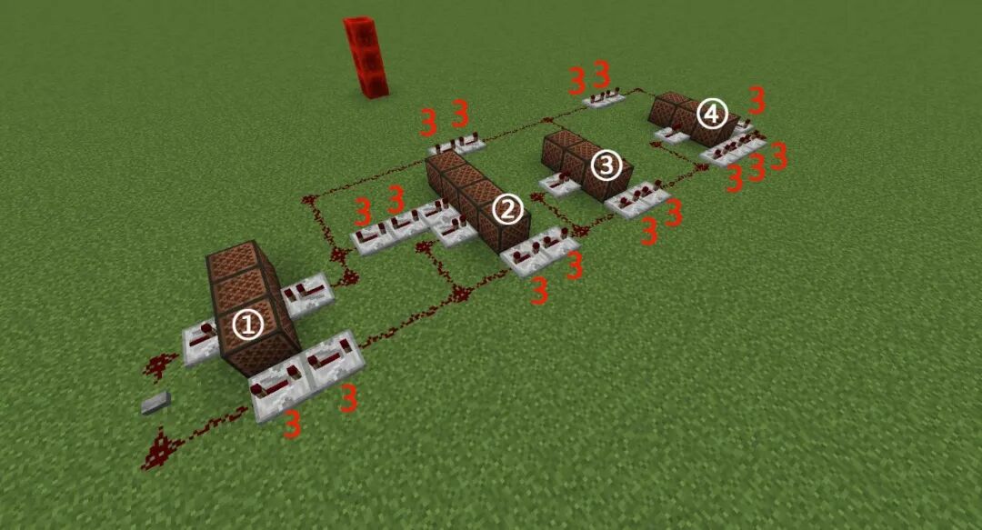 首先如图摆放红石中继器