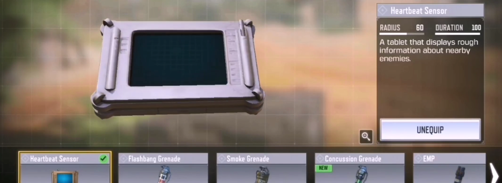 1.新增心跳反应,在手持的平板电脑上粗略的显示附近敌人的位置,装备去占用投掷武器按键位置。