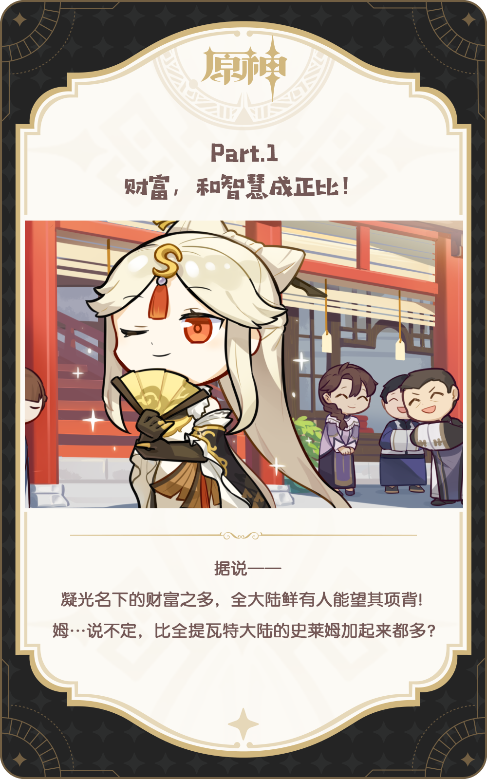 不过,往来的人们都在讨论「凝光大人」、「生辰」什么的,他们口中「凝光大人」似乎非常厉害,酱酱也在意起来了姆...