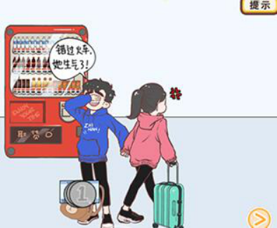 等小姐姐在冷静中时,切换到右边场景,把车票拖动到售票口。