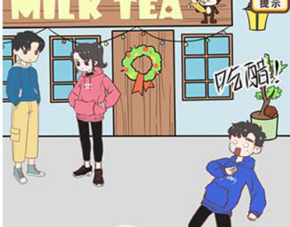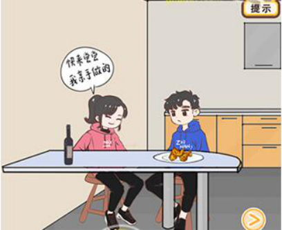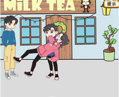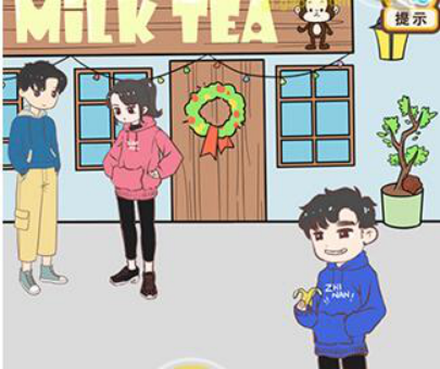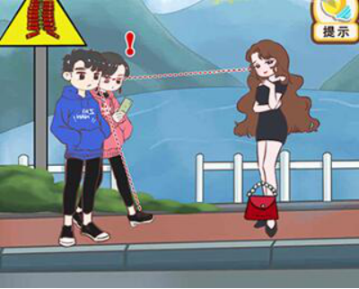 最后将香蕉皮拖动到小姐姐脚下。