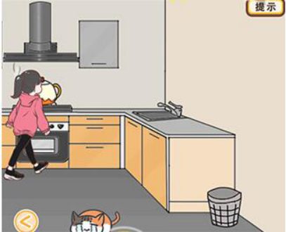 然后点击灶台上的水壶,等小姐姐过来后将鸡翅给猫咪吃。