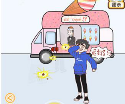 切换到右边场景,将鞭炮使用在人群中,然后点击冰淇淋车。