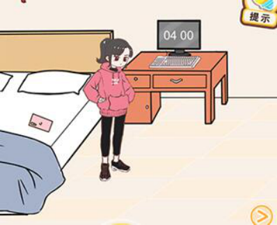 先点击床上的手机得知网课4点结束,再将屏幕上的时间调整到4点。