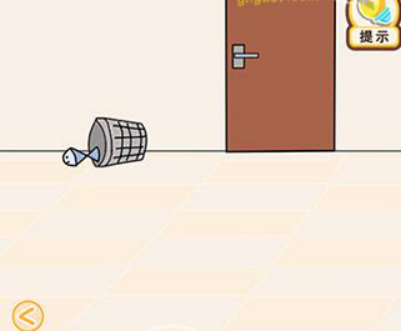 切换到右边场景,打翻垃圾桶拿到鱼。