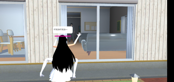 是阿朵在落地窗外吓他!