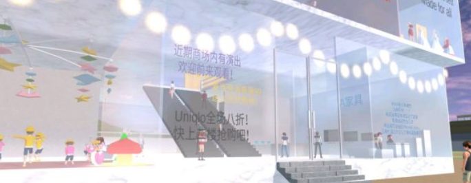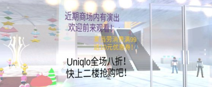 玻璃墙上也会定期展示近期商场内店铺的打折活动和演出通知