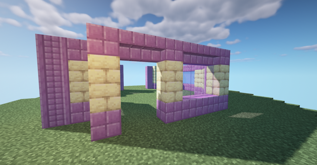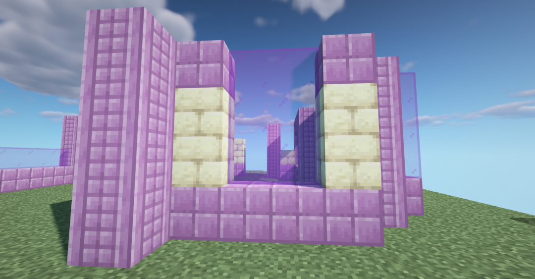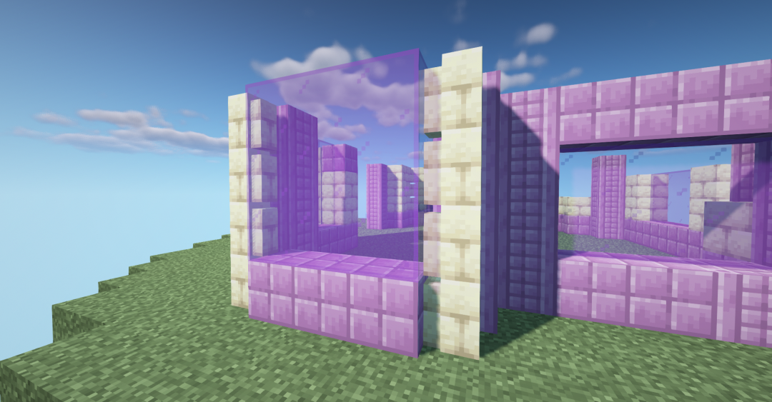 使用紫色染色玻璃、末地石砖墙