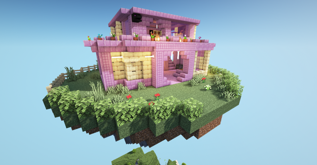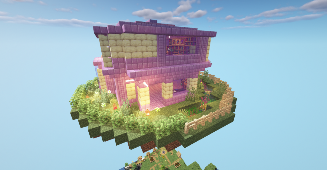 一个温馨十足的空中末地小屋就建完啦~