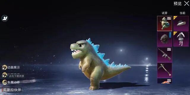 关哥斯拉的皮肤,其实这款皮肤在国际服中已经出了,国际服中不仅仅有哥斯拉的皮肤还有迷你小哥斯拉与迷你小金刚,和平精英“哥斯拉”皮肤这款名叫:怪兽之王
