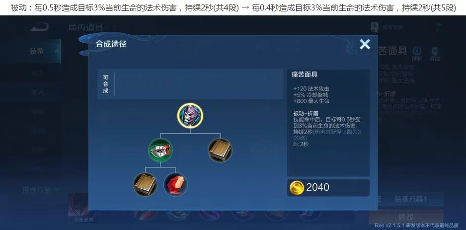 痛苦面具加强:被动总伤害增高,每0.4秒造成3%的伤害。