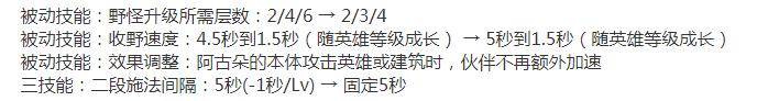 阿古朵平调:1技能不再对友军加速,大招不再对本体加速,野怪伙伴攻击力增高,即伤害增高。