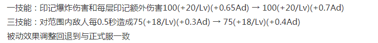 李元芳上一次调整:1/3技能AD加成伤害增高,即后期伤害增高。