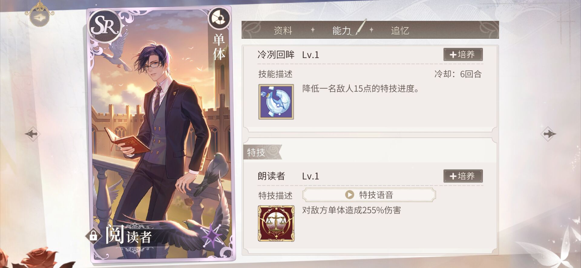 ①单体攻击的卡牌就选择那种能给自己或者是全队加攻击和暴击值的,最后的大技能肯定是要选择对单体造成爆发性的伤害啦,单体还是比较好选择的。