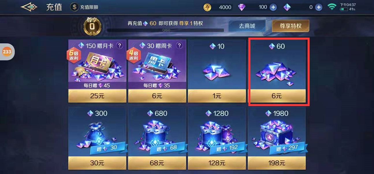 2、进入充值界面,选择需要充值的额度,点击购买
