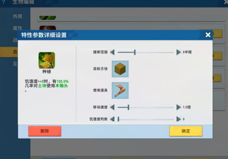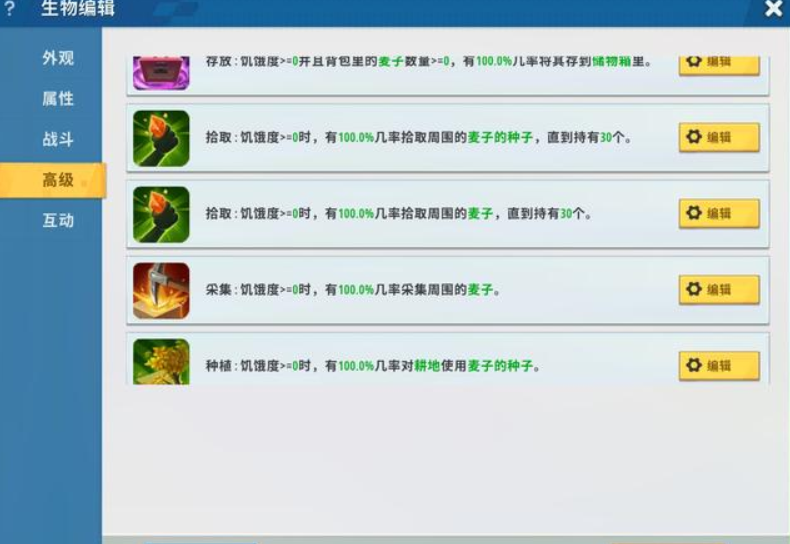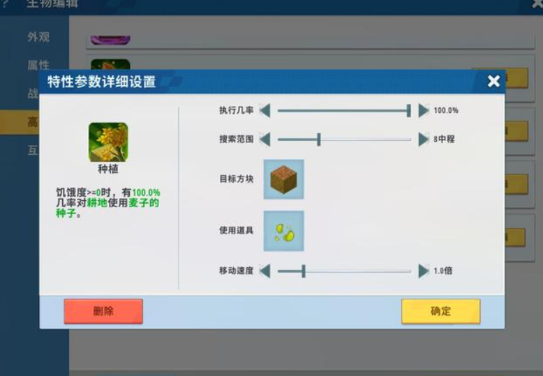 其实很简单,玩家进入插件库后在生物一栏中找到狗(驯服后的狼),然后点击高级给它增加新的特性。需要增加的特性有五种,分别为: 1、种植——设定为对耕地使用小麦种子。 2、拾取——拾取范围内的小麦种子。 3、拾取——拾取范围内的小麦。 4、采集——采集成熟的小麦。 5、存放——将小麦存放到箱子内。