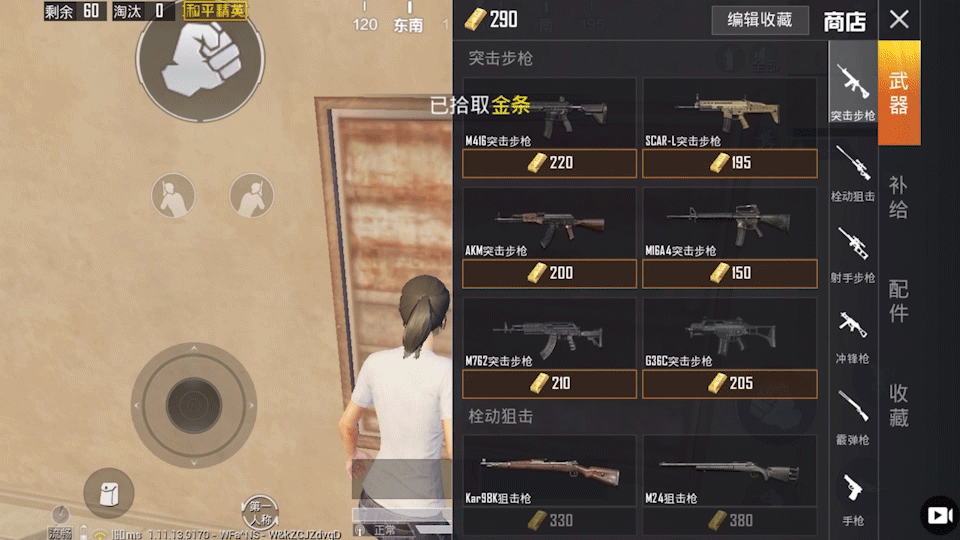 落地后以最快的速度搜完金条,买把枪防身。