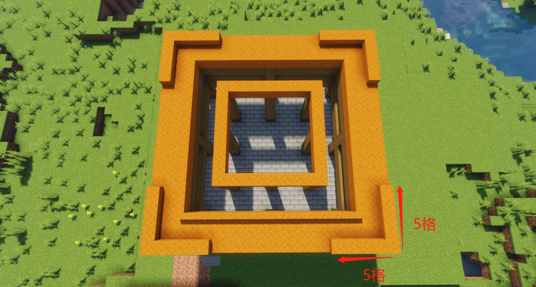 用石砖楼梯圈出一块15*15的地