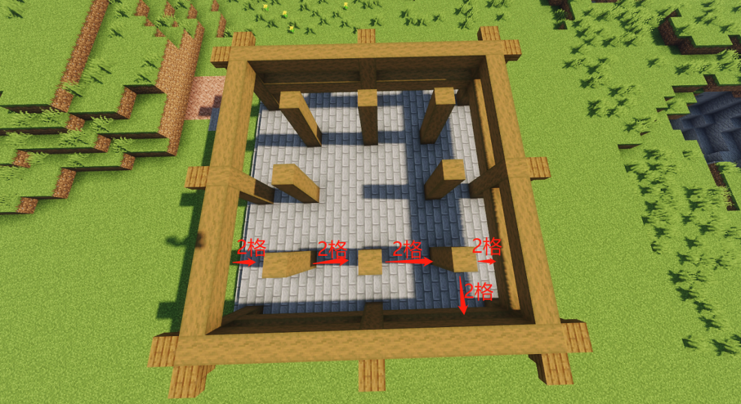 再按照下图用深色橡木台阶包裹一下