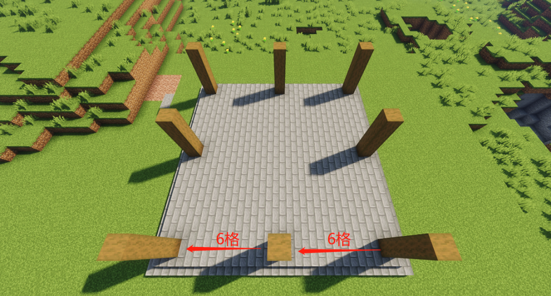 用去皮云杉木搭建8根高为5的柱子