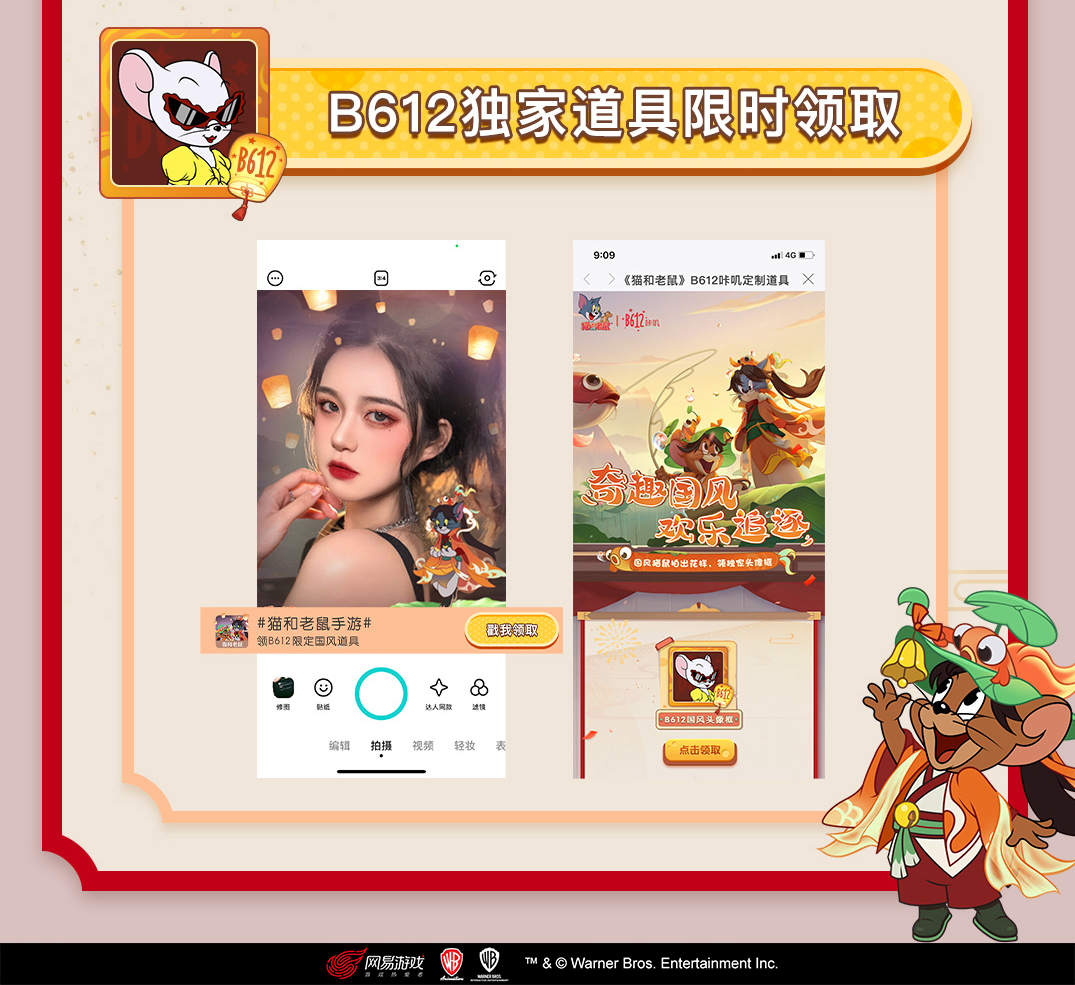猫鼠相伴,颜值加分。由华纳兄弟互动娱乐正版授权、网易精心研发的《猫和老鼠》官方手游,于3月5日起,与B612咔叽开展梦幻联动,让相机留下你的惊艳瞬间!