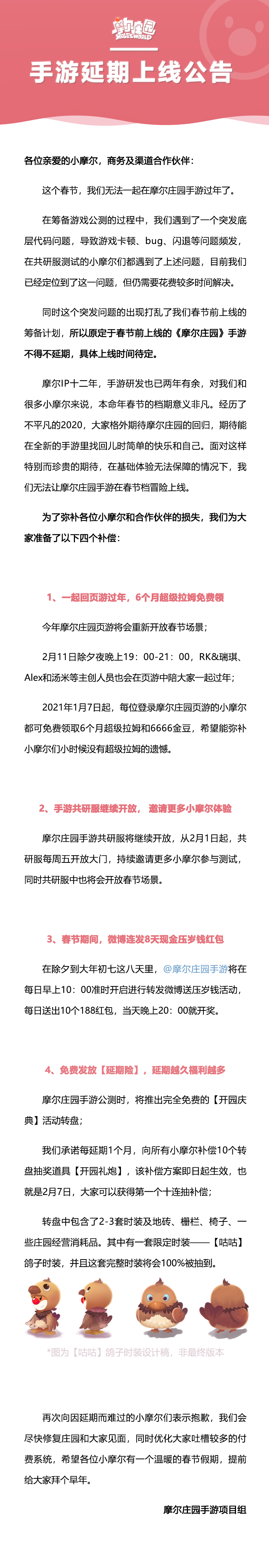 感谢大家来参加测试的测试,开服以来我们收到了许多小摩尔对于《摩尔庄园》手游付费系统的意见,这是付费系统第一次面向大家开放,确实有许多考虑不周到的地方,这也是我们不敢大规模开启测试的原因,首先可以向大家保证——付费系统一定会优化,公测不会是这个样子。