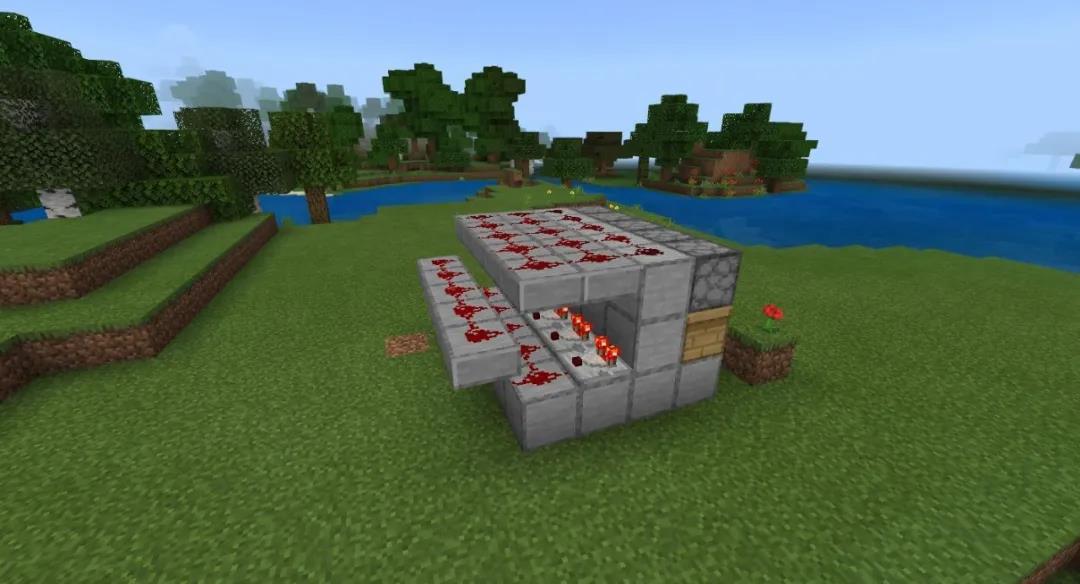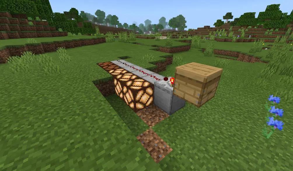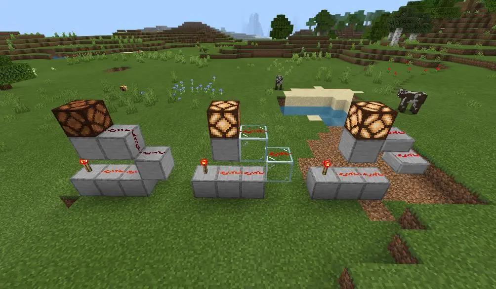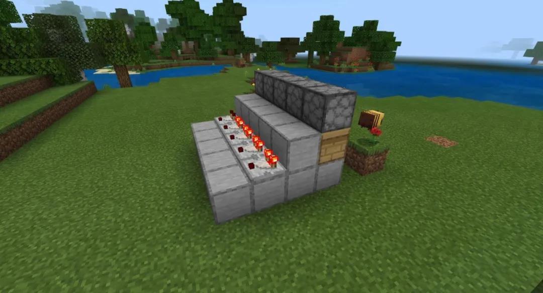 在这些方块的后面放置红石比较器(刚放的时候红石比较器不会亮)