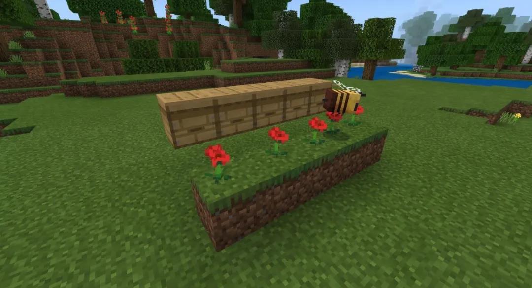 现在地面放置5个蜂箱,蜂箱数量可以由冒险家自己决定,因为这个机器是可以堆叠的,然后在蜂箱前面隔一格放相应的泥土和鲜花,最后吸引相应数量的蜜蜂来采蜜安家