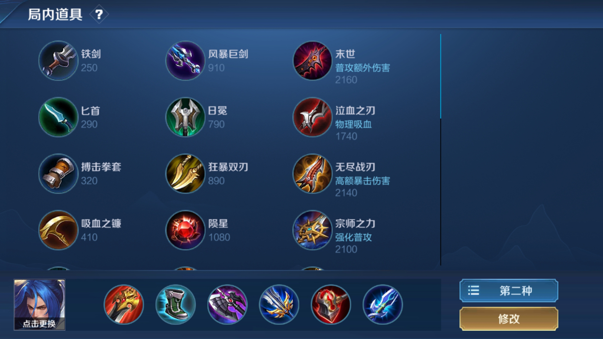 贪婪之噬、抵抗之靴、暗影战斧、破军、名刀司命、碎星锤