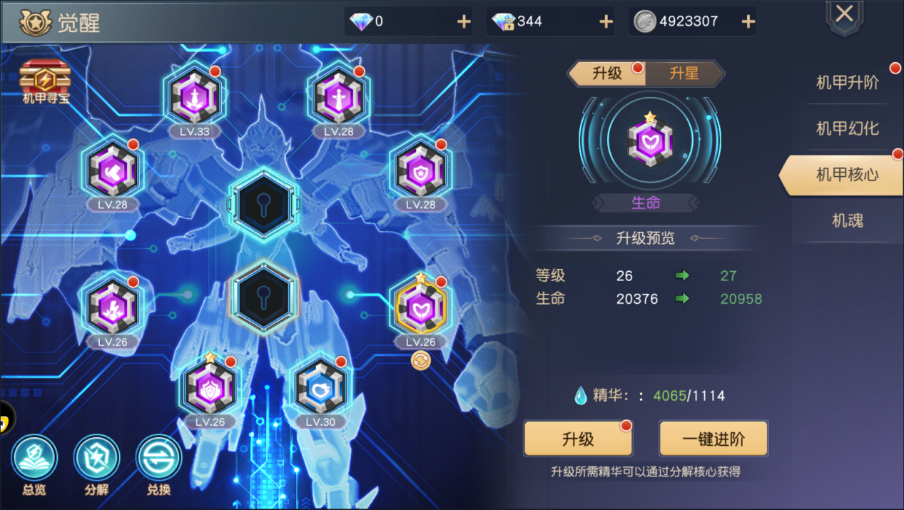 机甲幻化:众多酷炫机甲收集之所,解锁新机甲外观需要消耗特定机甲的核心。