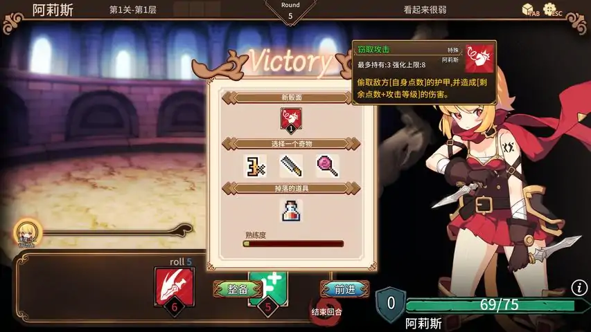 我们现已开通discord社区,如果您有任何问题,可以点击右侧discord链接进入.也可以discord內添加我們的頻道:在这充斥着魔物的角斗场中,帮助她们逃出生天吧!因种种原因而来到能够实现愿望的角斗场,她们不断地战斗!角斗场里充斥着各种不同种族的人、魔物,或者其他的什么。输了的话就失去所有,赢到最后就什么都能得到,疯狂的欲望侵染了这个地方。你能否获得最终的胜利呢?Rougelite x 爬塔 x 骰子战斗・角斗场物语是一款使用骰子进行战斗的轻度肉鸽游戏。・游戏中你需要收集不同的骰面技能以及奇物,战胜越来越强大的敌人,目标是赢得最终的胜利以离开角斗场。盗贼猫娘、还是姬骑士?・两位主角拥有完全不同的技能、奇物体系,选择不同的主角将带来截然不同的游戏体验。● 阿莉丝在炮火中长大,游走在阴暗的街边,坏事做了一箩筐,调皮的小野猫。惹怒了大人物,流下鲜红的血,在小巷垃圾桶边瑟缩的,被雨淋湿的小野猫。如果可以活下去的话,不论是什么都愿意做,野蛮的求生之火灼伤了路人的裤脚。「是吗……」说书人停下了脚步,「如果就这样死掉,未免太过可惜。」获胜的奖品是生命、金钱、数不尽的美食、豪华的大房子,失败的话……阿莉丝没有思考失败的余裕。于是她头一次穿上并不破旧的装备,在残酷的牢笼中开始挣扎。● 奥莉薇亚王国覆灭,而公主却没能在战场上死去,啊啊,何等的不幸。地牢潮湿的味道如影随形,拷问的戏码每日都在上演。但侮辱与疼痛没能折断她的傲慢,公主骑士依然抱持着无用的自尊。终于,在日复一日的折磨中,她逐渐变得虚弱,治疗术也无法挽回,骑士之花即将枯死在黑暗中。「是吗……」说书人停下了话语,「这样的结局未免太过无趣。」获胜的奖品是生命、自由、复仇的机会、王国复兴的希望之火,失败的话无非是重归地狱,奥莉薇亚没有拒绝的理由。于是她穿上可笑的盔甲,在残酷的牢笼中开始挣扎。可重复游玩!多样的骰面技能与奇物组合・轻度的肉鸽元素让你在游玩过程中遇到各种各样的骰面技能与奇物,每一局都有所不同,做出选择,用你独一无二的组合来挑战关卡。・使用独特的骰面构筑系统,打造出符合自己心意的无敌骰子吧!肉鸽初心者也OK!・在战斗开始之前可以随时存档・需要注意的是,除了boss关卡以外,在道中战败的话,将无法通过自动存档重新挑战。・总之,勤快地存档吧。