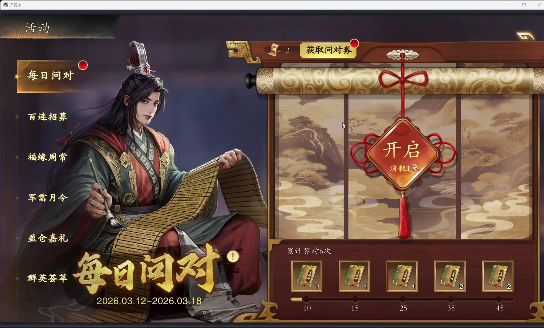 名将杀每日问对挑战,九题错两,勉强及格