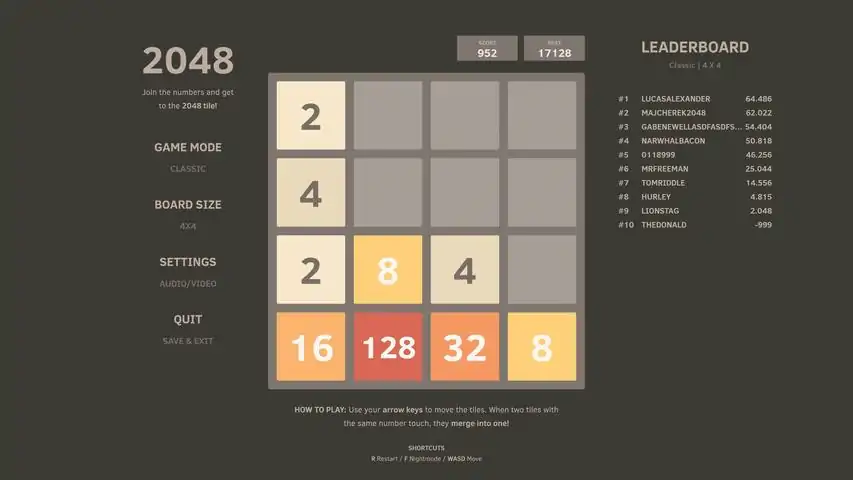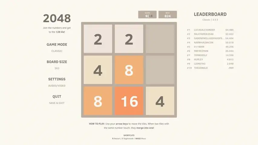 This is an excellent version of the popular game 2048, which you can play on your windows PC or tablet. THE 2048 is a fun, simple and very addictive game. You need to combine tiles with numbers to reach the number 2048!Game features: Cool and stylish game 2048! Two types of levels modern and classic. Beautiful and simple UI. Supports all devices including tablets! A dynamic soundtrack written by Rob Gasser. Keep playing for High-score after collected