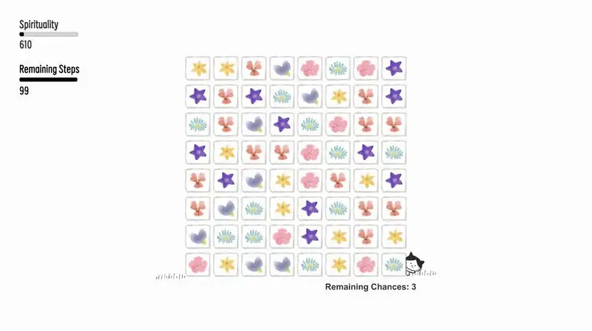 欢迎参观留白美术馆!小猫咪是一位喜欢留白风格的画家,它的美术馆展示着她一年以来的画作。一年前,小猫咪的生活中有太多的颜色、太多的思绪和太多的工作。有这样一个古老的传说:“灵性会在日复一日的重复工作中耗尽。 灵性耗尽后的猫生将永远没有快乐。”为了重新获得灵性,小猫咪开始了她的冒险之旅。画作中的【色彩精灵】就像琐碎生活中的形形色色的事物,有美好的,也有难过的。灵性的收集需要在随季节变换的风景中【收集】或【消除】这些【色彩精灵】。游戏中包含了48个关卡和12种经典的休闲益智类游戏玩法,比如【祖马】、【三消】和【泡泡龙】等。快跟随小猫咪一起经历一年、四季、12个月的奇妙探险吧!希望你也可以像小猫咪一样,重新获得灵性和快乐。