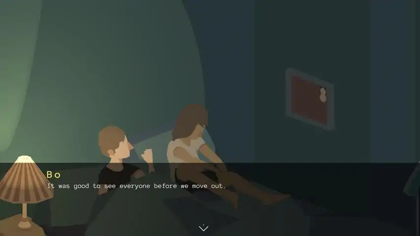 波和奥是一对室友,在南伦敦的公寓已经住了一年。他们本科即将毕业,正在准备搬出去。奥因为签证的原因,必须返回日本,把波一个人留在英格兰。两人已经不再憧憬毕业之后的生活,政府的不闻不问也让他们心灰意冷,他们正在努力接受现实,尝试面对不确定的未来。而在他们公寓下面的深处,什么东西正在生长……漫步温馨的公寓,端详波和奥日常使用的东西。烧烤、玩游戏或者熬夜聊天。走进这两个酷儿学生和朋友的生活,参与他们的日常活动。结识新的室友,了解多眼动物一般的卢。《No Longer Home》诞生的时候,游戏的开发者也是刚刚毕业,也是因为相似的原因分隔两地,他们选择一起开发游戏来保持彼此之间的联系。开发团队的Hana和Cel希望能通过这个项目,探索和表达“告别”所带来的情绪和情感。