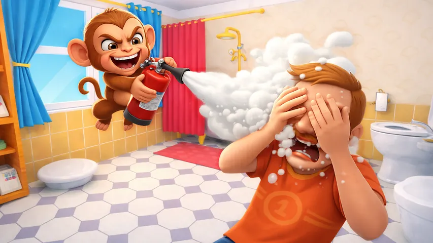 3.3 万 热度 《淘气猴:恶作剧之屋》是一款爆笑模拟游戏,你将扮演一只调皮捣蛋的猴子,在家中制造各种混乱。 攀爬墙壁、栅栏和家具, 拳打脚踢人类,️ 捣乱各种物品,随意推倒东西,只为寻开心。每个区域都充满了各种有趣的互动,等你来挑战。 游戏玩法: 在房子里四处走动,探索不同的房间 选择物品,设置有趣的恶作剧 小心人类,避开他们的视线 当他们靠近时,快速奔跑逃跑 ⭐ 随着游戏进程解锁新的技巧、升级和恶作剧技能等级 游戏特色: 扮演一只爱恶作剧、爱搞怪的猴子 从户外庭院到室内房间,丰富的互动区域 滑稽的反应和卡通风格的动画 精美的画面和动画:带来非凡的游戏体验 ️ 流畅的操作和简单的游戏玩法 准备好成为镇上最淘气的猴子了吗?