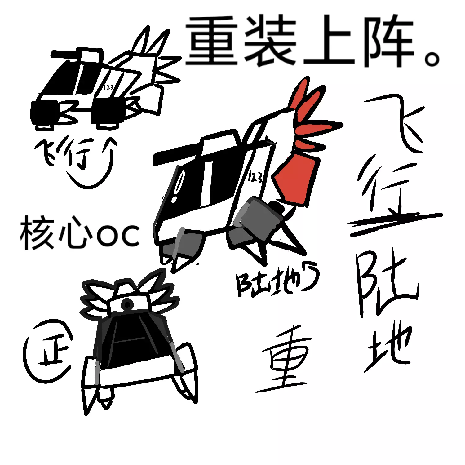 小红书上参考、画了个oc。(核心) 我也是闲的没事干的😋 名字: 红色飞机(攻击核心) 技能: 可以从头顶的自炮管色小型子弹(手动的) (可以切换飞行和陆地模…