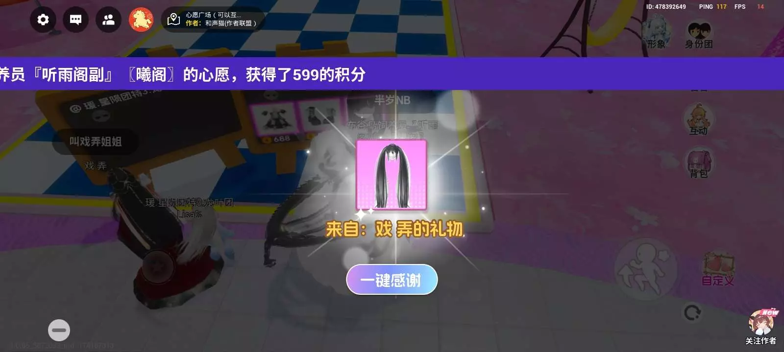 主: @戏 弄 就是这位小蛋糕送的呀,这是他的助理,我们的戏弄宝宝还没有回来,真的人超级好,赶紧进群聊打卡五天哟,人越多越好,记得给她点点关注涨涨粉丝哟,宝宝们…