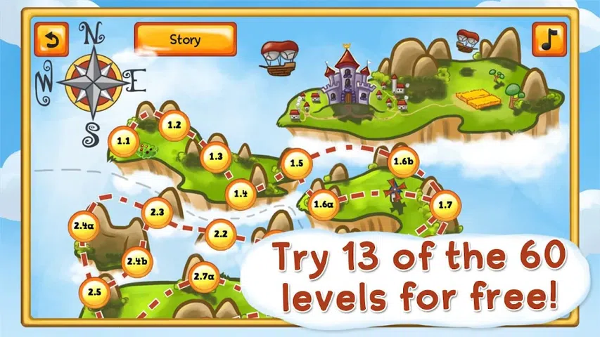 一个美丽而有趣的益智游戏,设置在云端王国,有超过 60 个关卡,您可以在这个免费版本中尝试 13 个关卡! 当你试图让国王飞过他的迷宫般的王国时,国王会飞很快就会让你的大脑出汗。你需要敏锐的眼光和敏锐的智慧来驾驭高耸的山脉、尖刺的大门和途中遇到的危险旋风。 特征: * 13 个具有挑战性的谜题 * 可爱多彩的 3D 图形 *可爱的飞艇 * 原声大碟 *易于使用的提示系统 XPERIA PLAY 优化 此游戏请求以下用途的权限: 让您的手机不进入睡眠状态,以防止在播放时屏幕变黑。 用于分析和改进错误报告的 Internet 访问(我们不收集私人数据)。 当您被呼叫时读取手机状态以暂停游戏