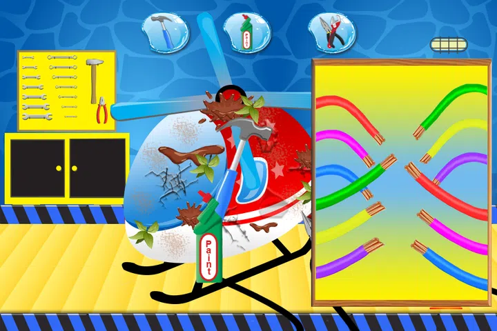 您好!今天,我们来到了机场更直升机谁愿意做他们的工作。从他的使命返回后,直升机已被清洗,但我不能这样做,因为我们不知道如何清洗和没有时间来做到这一点。在这个游戏中你必须要这架直升机的清洁并修复它,因为我们知道,你真的很喜欢直升机。 1)首先,你必须从驾驶舱中删除的污垢和泥浆每一丝。 2),那么你必须清理直升机座椅和地板。 3)仍然需要胶水每个线程,并配合他们可以操作所有设备。 4)需要清洁窗户,因为他们是很肮脏的。感谢您agreeding帮助我们在这场比赛中,但你必须做的一件事。机场管理者想改变飞机和直升机的所有席位,为此,我们需要你。你必须选择一些车型和颜色和更改所有座位直升机。祝好运