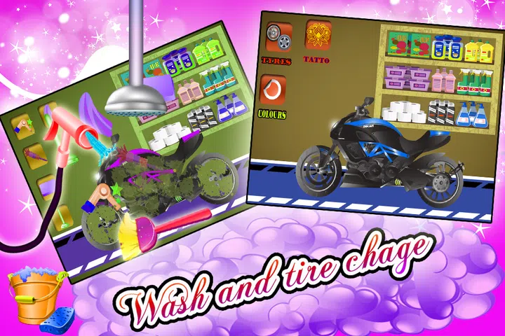 运动自行车洗沙龙游戏 该游戏将帮助您指导运动自行车的清洗,轮胎更换。 使用这些工具让您的运动自行车保持清洁和美观。 特征 : .使用烘干机去除自行车上的泥土和污垢层。 .通过使用淋浴去除您的自行车的泥硬点和污垢。 .然后用肥皂清洁它以保持自行车光亮。 . 用毛巾擦干汽车。 .如果轮胎运行缓慢并且看起来不好看,请在装饰场景中使用轮胎选择按钮进行更换。 . 颜色选择 .不用担心,还有很多颜色可供选择。 现在您的运动自行车看起来非常漂亮,可以长时间驾驶和快速驾驶。 享受孩子们。玩得开心