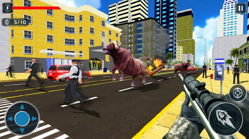 特征 : - 逼真的3D城市环境为城市复仇公牛横冲直撞的攻击模拟器增添了新的活力。 - 真实的公牛音效给游戏带来刺激。 - 高效的游戏控制让游戏更流畅。 - 无尽的、基于任务的斗牛士游戏,这样你也可以获得积分。 - 多个动作丰富的任务,包括重型特技和战斗。 - 最好的狙击枪,用于射击愤怒的公牛,使城市警察变得强大。 愤怒的公牛攻击模拟器挑战,拯救您的城镇免受斗牛和公牛攻击