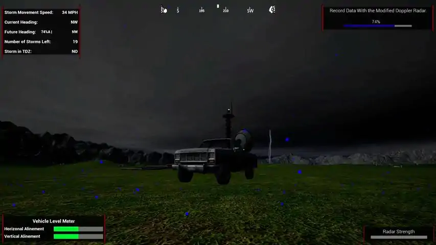 In Cyclones Playground you role play, in First Person , as the Severe Weather Division's lead Scientist of the Natural Disaster Prevention Team. The phenomenon that has plagued Perfection County gives you the opportunity to Study and stop or divert the record amount of tornadoes. You first must study the storms with the Doppler Radar that has been modified to be used on tornadoes and has been attached to a Truck. Once you have recorded enough Data you will be able to use the Project Vehicle and launch a Project Detour Device at the tornado, to try to change the path of a tornado, using an old decommissioned mobile missile launcher that has been attached to the Project Vehicle. After testing Project Detour, you can begin testing Project Storm Dance. Project Storm Dance uses the same delivery system as Project Detour. But since P.S.D. is based on cloud seeding tech, the P.S.D. Device will have to be launched at the clouds and the amount of the three main elements has to be configured using a military grade laptop. The fully Simulated storm system makes for rapidly changing weather conditions. So while you focus on the tasks at hand be sure to keep an eye out for tornadoes because if you're not careful you could be killed if you are to close and you will have to start over.