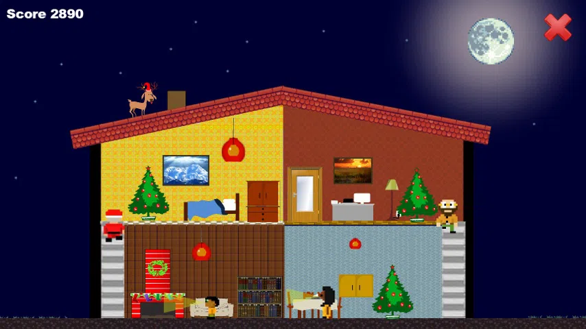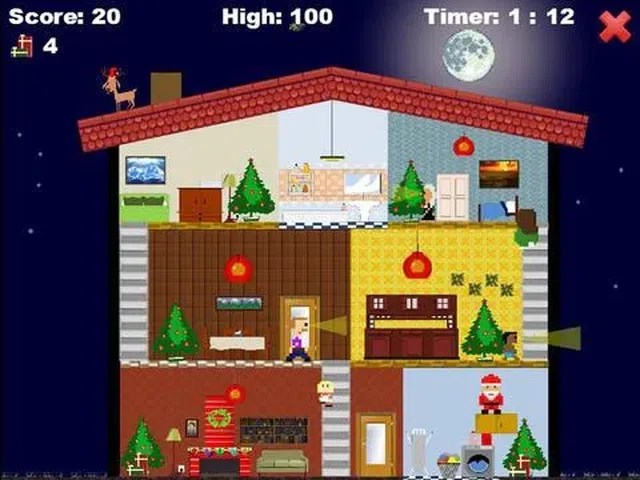 * Indie Prize Showcase Asia 2014 * 圣诞老人可以在不被发现的情况下在圣诞树下送礼物吗? 在这款原创平台游戏中找出答案:奔跑、躲在门后并跳上任何可用的家具,在不被发现的情况下交付您的礼物! 受到大力水手(Nintendo 1982)等经典作品的启发,但其图形风格让人想起 Little Computer People(Activision 1985),“秘密圣诞老人:隐身圣诞节”试图重现一个隐秘但欢乐和节日的氛围 平台游戏中的氛围,即使输掉比赛也应该让玩家微笑。 特征: - 扮演圣诞老人并跳上任何可用的家具或躲在门后,以免在平安夜被寻找礼物的人看到! - 老式平台游戏设置中的隐形游戏
